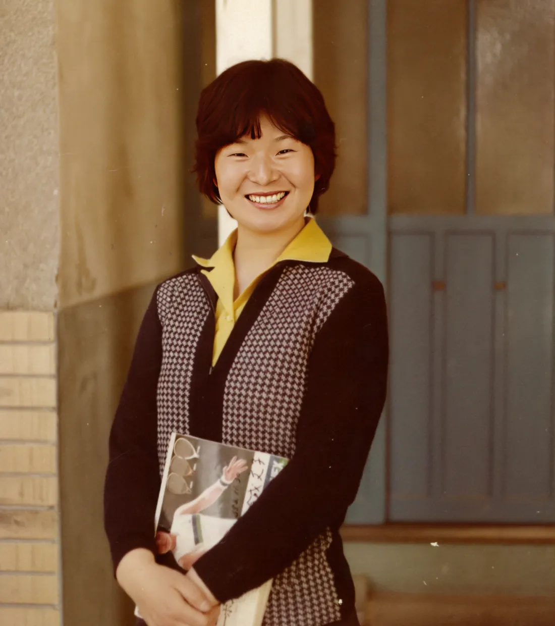 初めて勤務した中学校での1枚。雑誌「軟式庭球」を手にしたまま、先輩教員がパチリと撮影。
